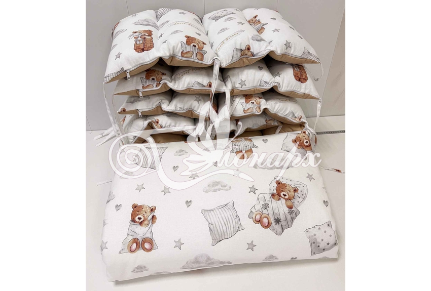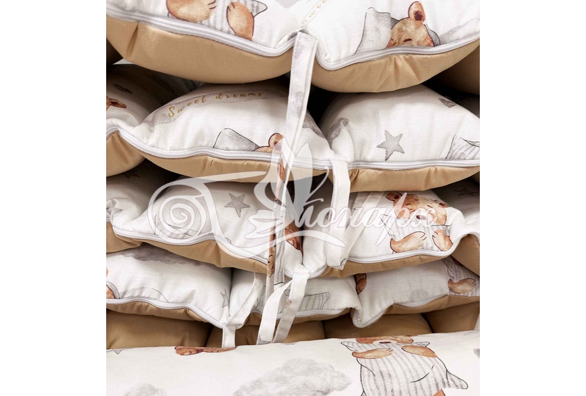 Бортики на замочках в кроватку: защитят Вашего малыша от ушибов, сквозняков, солнечных лучей и не дадут малышу запутаться в прутьях кроватки. - Подушка (100% хлопок- бязь) - 40х60 см.