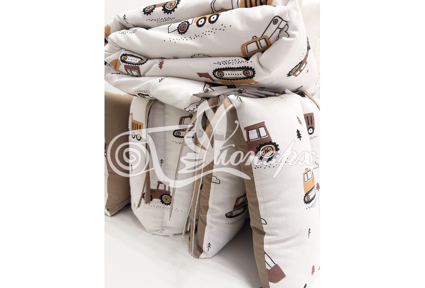 - Бортик-заборчик стеганый плотно забит синтепухом (на замочках): - 2 шт. 60х34 см / - 2 шт. 120х34 см.